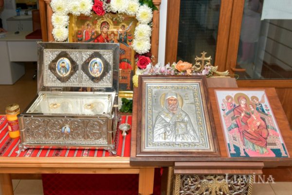 Τη λειψανοθήκη, η οποία περιέχει και απότμημα των λειψάνων του Αγίου Εφραίμ του Νέου, κόμισε ο π. Daniel Alexandru Bărîcă, της Ενορίας Ευαγγελιστρίας Μπελού, και την τοποθέτησε δίπλα στο αντίγραφο της ιεράς εικόνας της Παναγίας της Παντανάσσης της Ιεράς Μεγίστης Μονής Βατοπαιδίου.