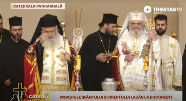Κατά την πομπή του Αγίου Δημητρίου του Νέου, Προστάτη του Βουκουρεστίου, και την τελετή υποδοχής της Τιμίας Κάρας του Αγίου Λαζάρου στον Πατριαρχικό Καθεδρικό Ναό, ο Πατριάρχης Ρουμανίας κ.κ. Δανιήλ και ο Αρχιεπίσκοπος Κύπρου κ.κ. Γεώργιος απηύθυναν ομιλίες.
