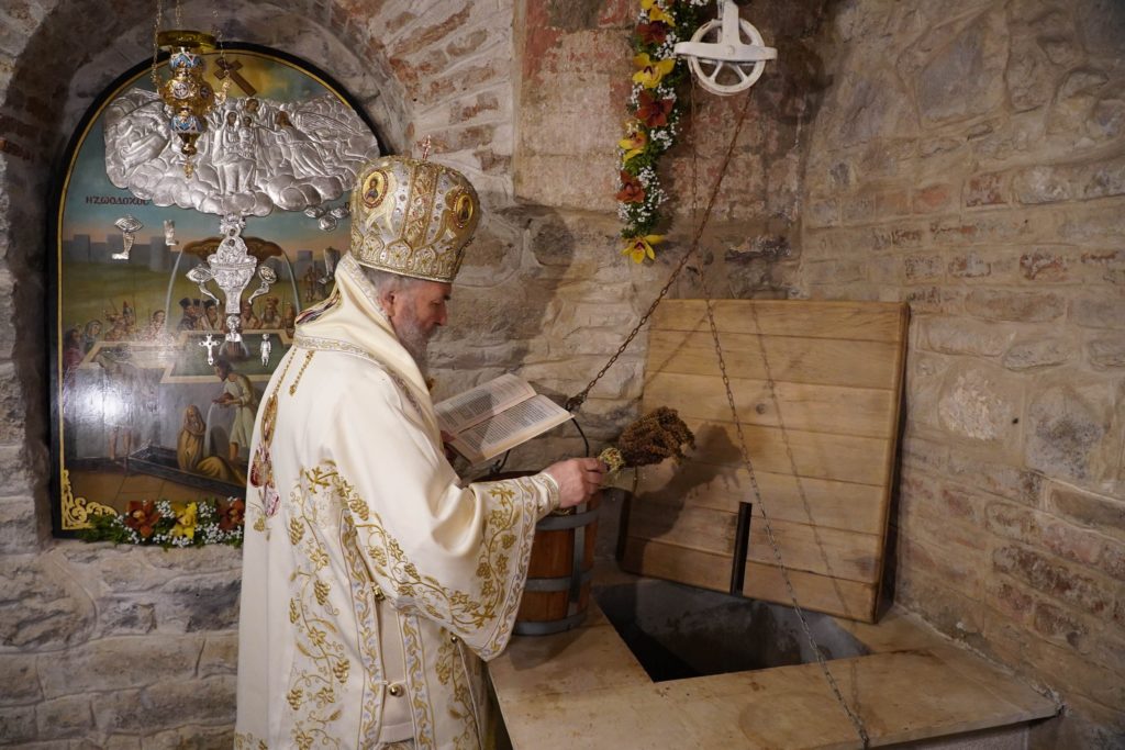 Πιστοί της Αρχιεπισκοπής Κάτω Δουνάβεως, τουΠατριαρχείου Ρουμανίας αλλά και από όλη τη χώρα προσήλθαν  για να λάβουν αγιασμό από την πηγή που αναβλύζει Αγίασμα κάτω από την Αγία Τράπεζα. Η πηγή ανοίγει  το οποίο ανοίγει μια φορά το χρόνο, ανήμερα της εορτής της Ζωοδόχου Πηγής.