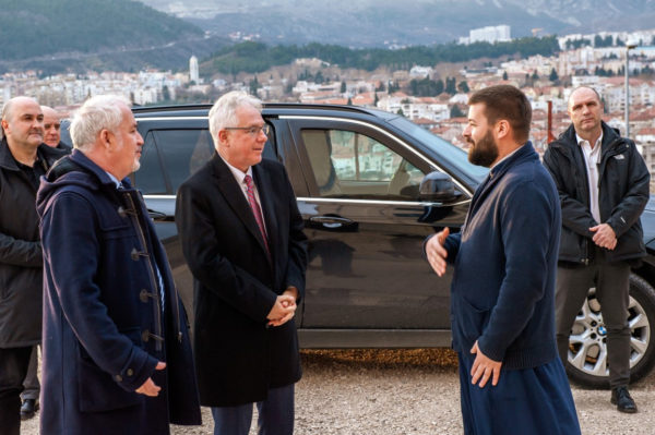Εν συνεχεία ο κ. Μέρφι συζητήθηκε με τον Επίσκοπο Ζαχουμίου και Ερζεγοβίνης κ. Δημήτριο στον ιστορικό ναό του Γενεσίου της Θεοτόκου με τον Πανιερώτατο να ενημερώνει τον Αμερικανό διπλωμάτη για την κατάσταση στην Επισκοπή του καθώς και για την ιστορία του ναού.