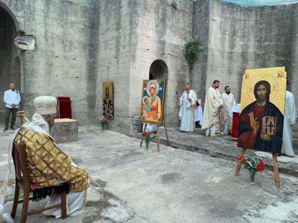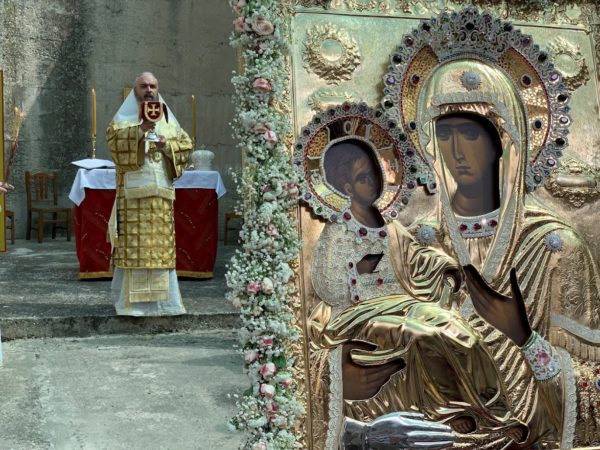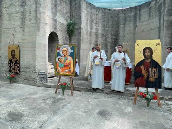 “Μαζευτήκαμε με την ευκαιρία της μεγάλης χαράς, γιατί για τη μικρή μας κοινότητα λάβαμε αντίγραφα της θαυματουργής εικόνας της Υπεραγίας Θεοτόκου Τριχερούσας που βρίσκεται στο Χιλανδάρι και της εικόνας της Παναγίας που βρίσκεται στο ασκητήριο του Αγίου Σάββα στο Άγιον Όρος. Μαζί τους, σε αυτόν τον άγιο τόπο, θα προσευχηθούμε στην Υπεραγία Μητέρα του Θεού να είναι μεσίτης όλων μας ενώπιον του θρόνου του Υψίστου και μπροστά στο πρόσωπο του αγαπημένου της Υιού που, ερχόμενος σε αυτόν τον κόσμο, έδωσε όλοι μας την ευκαιρία να γίνουμε αδέρφια Του”, ανέφερε.