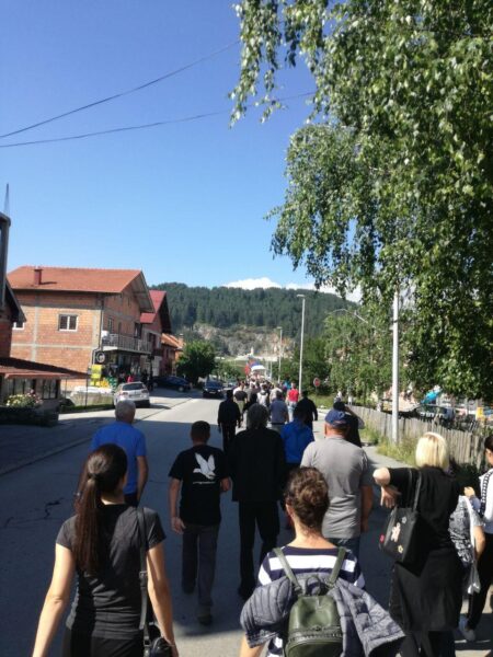 Σήμερα το πρωί, εκατοντάδες πολίτες της Πλιέβλια ξεκίνησαν από την Εκκλησία της Αγίας Πέτκας (Παρασκευής), η οποία βρίσκεται στο κέντρο της πόλης, με κατεύθυνση προς το συνοριακό αστυνομικό τμήμα, που βρίσκεται στο Radosavci, για να υπερασπιστούν τον πατέρα Σάσα (Αλεξάντρ) από την απέλαση.