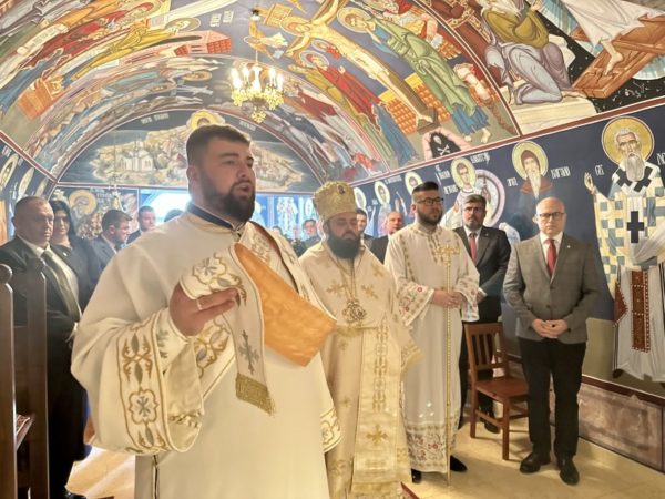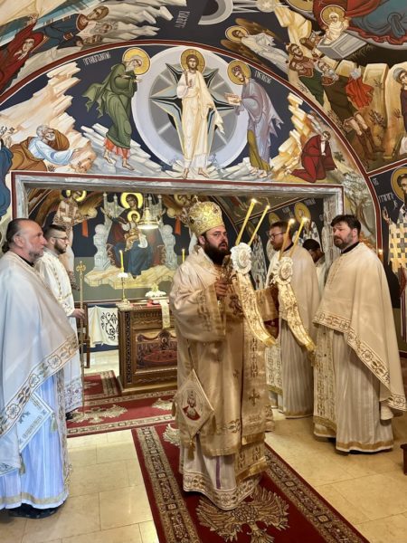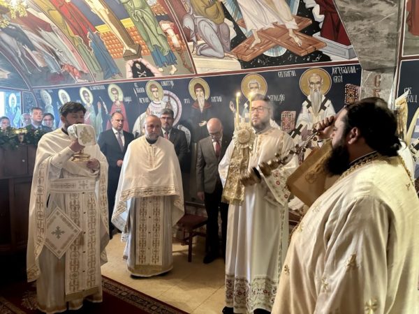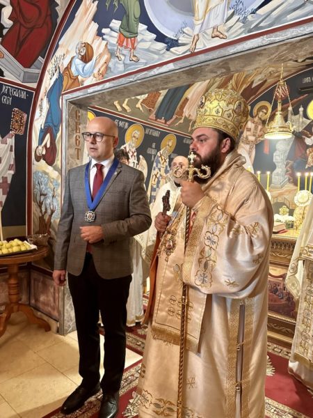 Ο Επίσκοπος κ. Χερουβείμ εκφώνησε θεόπνευστο κήρυγμα και στη συνέχεια τίμησε τον κ. Βούτσεβιτς με το ανώτατο βραβείο της Επισκοπής, το οποίο είναι το Τάγμα του Αγίου Στεφάνου Στιλιάνοβιτς που είναι Άγιος της εν Σερβία Ορθοδόξου Εκκλησίας. Σημειώνετια ότι στις 12 Ιουλίου η Εκκλησία της Σερβίας τιμά τους Αγίους Αποστόλους Πέτρο και Παύλο, με το παλαιό εορτολόγιο.
