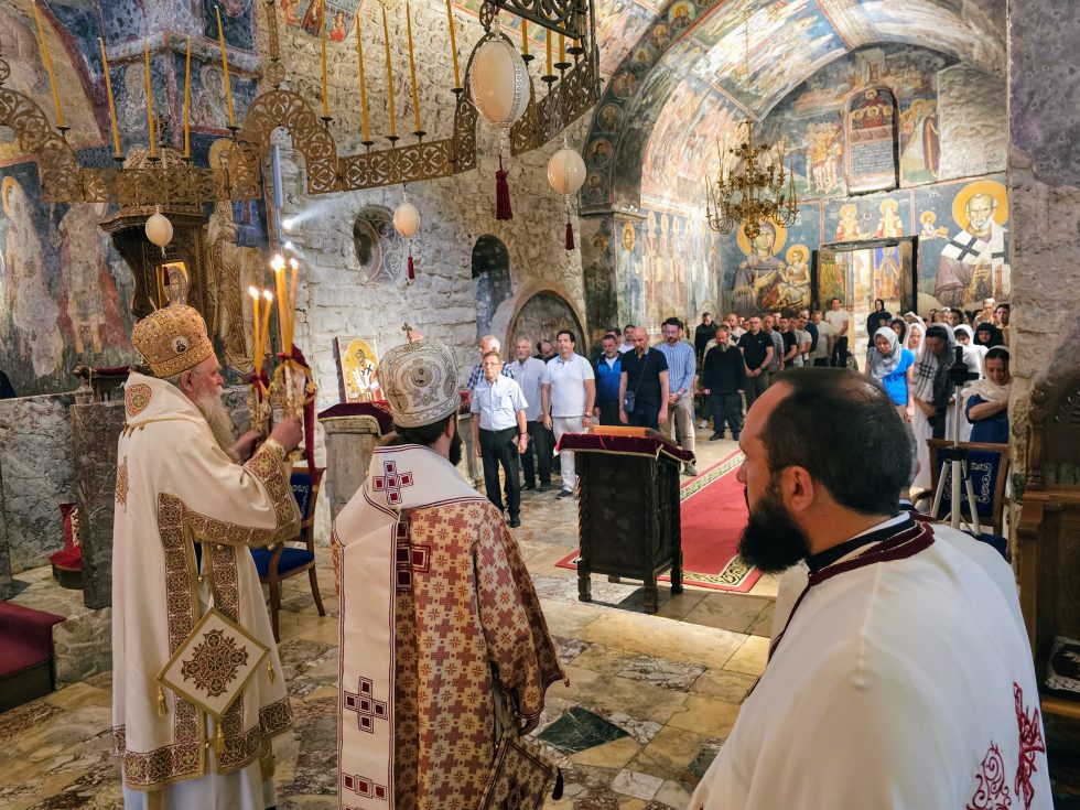 Ο Σεβασμιώτατος Μητροπολίτης Μαυροβουνίου και Παραθαλασσίας κ. Ιωαννίκιος, συλλειτουργούντος του Θεοφιλεστάτου Επισκόπου Τόπλιτσας κ. Πέτρου, του κλήρου και των μοναχών της Μητροπόλεως Μαυροβουνίου και Παραθαλασσίας, της Μητροπόλεως Ράσκας και Πριζρένης και της Αρχιεπισκοπής Βελιγραδίου και Καρλοβικίου, τέλεσε σήμερα, 29 Ιουνίου 2025, την Θεία Λειτουργία στην Πατριαρχική Μονή του Πετς.