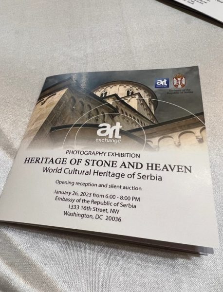 Η ανάγκη προστασίας της σερβικής πνευματικής και καλλιτεχνικής κληρονομιάς στο Κοσσυφοπέδιο και τα Μετόχια επισημάνθηκε στα εγκαίνια της έκθεσης φωτογραφίας «Heritage of Stone and Heaven» στην Ουάσιγκτον. Παρόντες ήταν ο Πρέσβης της Δημοκρατίας της Σερβίας στις ΗΠΑ Μάρκο Τζούριτς και η ιδρύτρια και διευθύντρια του Art Exchange, Σβετλάνα Ρόγκιτς.