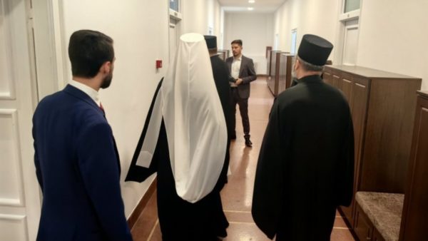 Με τον Μακαριώτατο συμπαρέστη ο Θεοφιλέστατος Επίσκοπος Μάρτσας κ. Σάββας, ο Αρχιμανδρίτης Νεκτάριος (Đurić) και ο κλήρος, συμπροσευχομένων των φοιτητών και καθηγητών της σχολής, με επικεφαλής τον πρύτανη, πρωτοδιάκονο Radomir Vrućinić.
