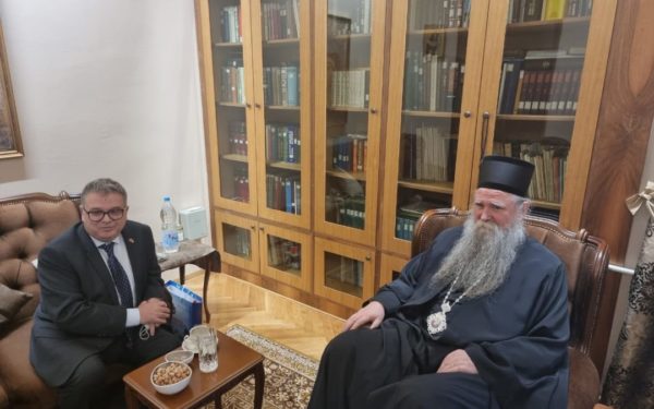 Aπόψεις για θέματα σχετικά με την αποστολή της Εκκλησίας, καθώς και για τα προβλήματα και τις προκλήσεις που αντιμετωπίζει σήμερα ολόκληρη η κοινωνία αντάλλαξαν κατά τη συνάντηση την οποία είχαν ο Πρέσβης της Γαλλίας στην Ποτγκόριτσα, Κρίστιαν Τιμονγιέ, με τον Μητροπολίτη Μαυροβουνίου και Παραθαλλασίας κ. Ιωαννίκιο.
