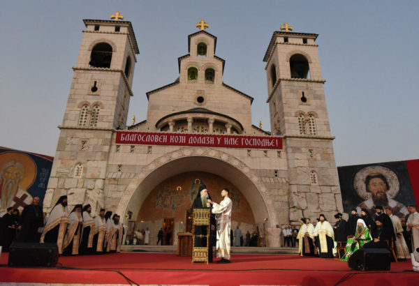 Την ίδια ώρα, οι πιστοί είχαν συγκεντρωθεί μπροστά στον Ιερό Ναό Αναστάσεως Χριστού στην Ποντγκόριτσα, για να γιορτάσουν την επικείμενη ενθρόνιση.