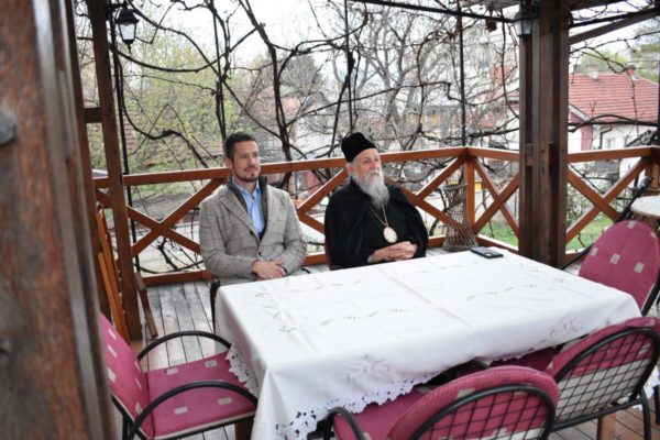 Ο Πανιερώτατος Επίσκοπος Βρανίων κ. Παχώμιος συνεχάρη τον κ. Νίκολα Ρόκβιτς για την ερμηνεία του και για την δωρεά του.