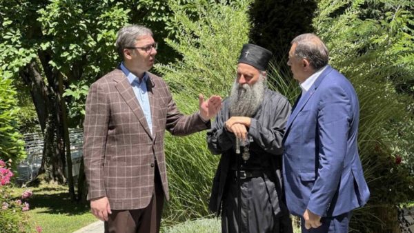 Για τα εθνικά ζητήματα τα οποία απασχολούν τον σερβικό λαό συζήτησαν ο Αλεξάνταρ Βούτσιτς, ο Πατριάρχης κ.κ. Πορφύριος και Μίλορνατ Ντόντικ, κατά τη συνάντηση που είχαν στη θερινή κατοικία του Σέρβου Προέδρου.
