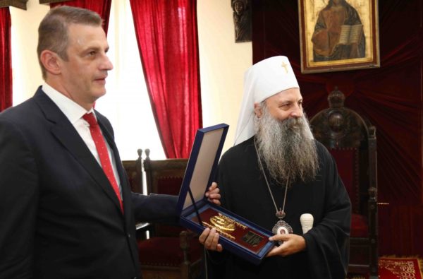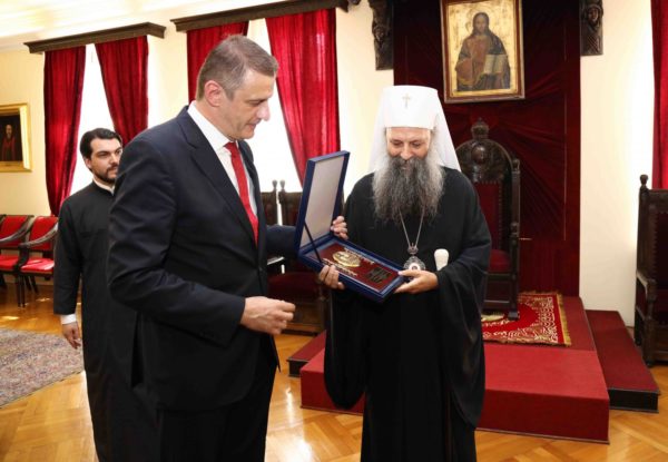 Κατά τη διάρκεια της συνάντησης, ο πρόεδρος της Σέρβικης Ομοσπονδίας Υδατοσφαίρισης, κ. Βίκτορ Γιελένιτς, χάρισε μια αναμνηστική πλακέτα στον Μακαριώτατο, ενώ ο αρχηγός της εθνικής ομάδας, Φίλιπ Φιλίποβιτς, του χάρισε το σκουφάκι της ομάδας με το νούμερο 2.