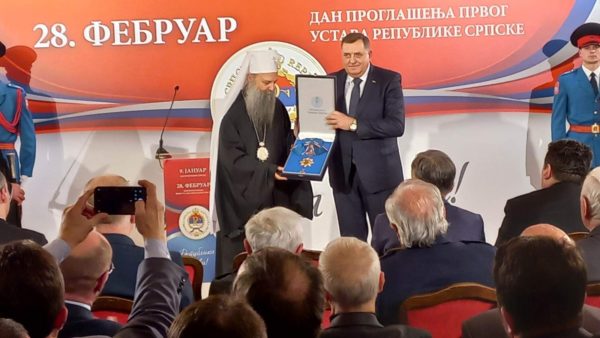 Με αφορμή την Ημέρα της Δημοκρατίας της Σέρπσκα ο Πρόεδρος της, Μίλοραντ Ντόντικ, θέλησε να τιμήσει τον Προκαθήμενο της Σερβικής Εκκλησίας για την στήριξή του.