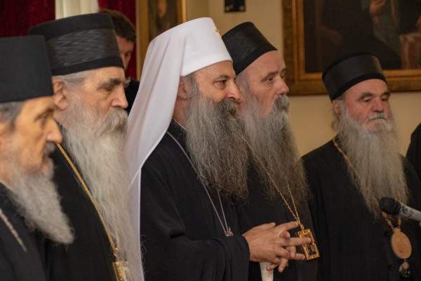 “Πριν από πολλές δεκαετίες, όταν ήσασταν αρχικά διευθυντής της Ραδιοτηλεόρασης της Βοϊβοντίνα στο Νόβι Σαντ και στη συνέχεια διευθυντής της εθνικής τηλεόρασης στο Βελιγράδι, όχι μόνο μας ανοίξατε την πόρτα αλλά δώσατε στην Εκκλησία να έχει τη δυνατότητα να μιλά για την πίστη μας από μικρές οθόνες σαν να μιλά από τον ίδιο τον ναό ή από το βωμό της εκκλησίας”, ανέφερε ο Πατριάρχης Πορφύριος ενθυμούμενος μια κίνηση στην οποία είχε προβεί ο κ. Βούτσελιτς κατά το παρελθόν.