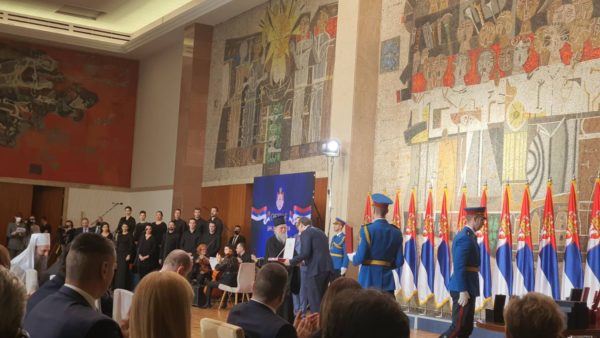 Με αφορμή την Ημέρα του Κράτους ο Πρόεδρος Αλεξάνταρ Βούτσιτς, παρουσία του Μακαριωτάτου Πατριάρχη Σερβίας κ.κ. Πορφυρίου, απένειμε το παράσημο στον Επίσκοπο Βράνιε κ. Παχώμιο.