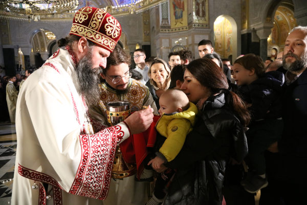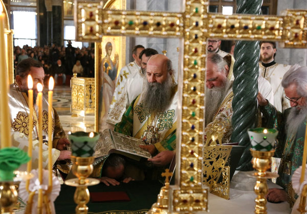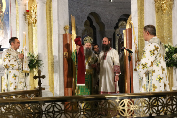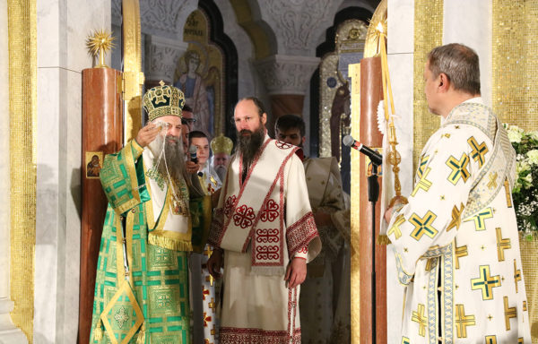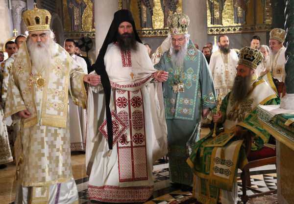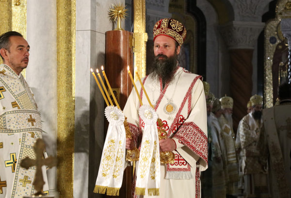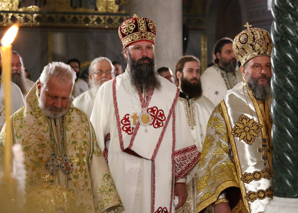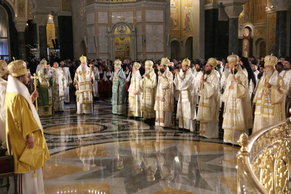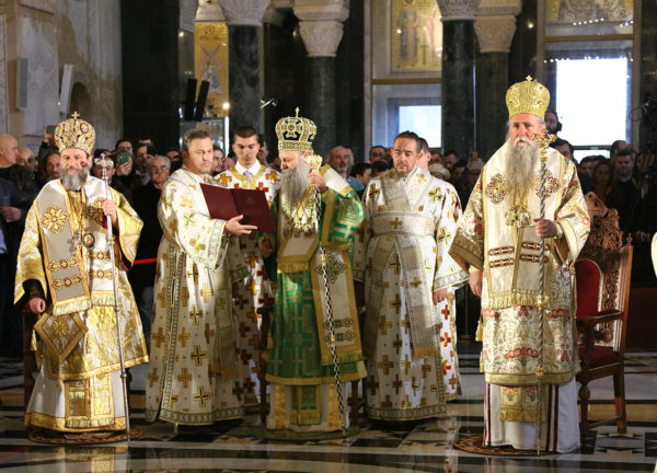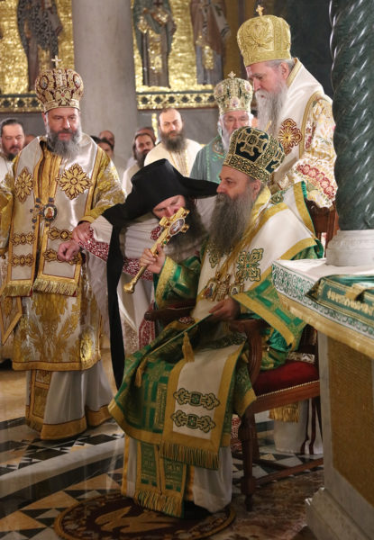 Στο Πολυαρχιερατικό συλλείτουργο προεξήρχε ο Πατριάρχης Σερβίας κ.κ. Πορφύριος συλλειτουργούντων Επισκόπων της εν Σερβία Εκκλησίας.