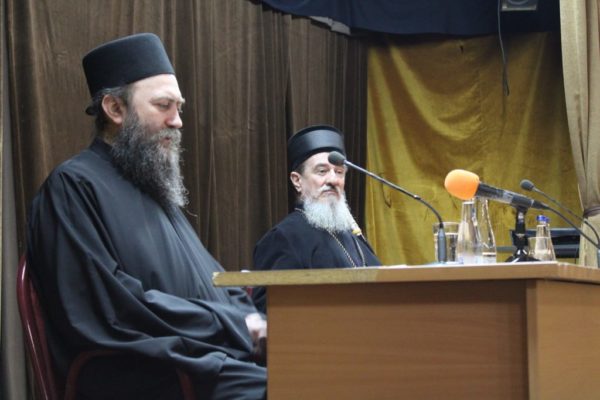 Ακολούθως, ο ηγούμενος της Μονής Χιλανδαρίου ανέπτυξε στους παρισταμένους το θέμα του και απάντησε σε ερωτήσεις. Πρωτύτερα, όμως, ευχαρίστησε για τη φιλοξενία και την τιμή που αισθάνθηκε για το γεγονός ότι μπόρεσαν να αναπέμψουν προσευχές και ευγνωμοσύνη στον Θεό μαζί με τον Επίσκοπο Μιλεσέβου. Στη συνέχεια υπενθύμισε στους παρευρισκόμενους τους ισχυρούς δεσμούς που ένωναν το Χιλανδάρι και το Μιλέσεβο για αιώνες: Η μεγάλη μας πνευματική χαρά είναι ότι μπορούμε να προσευχόμαστε εδώ στον ιερό ναό, όπου κάποτε αναπαύτηκαν εξ ολοκλήρου τα ιερά λείψανα του Αγίου Σάββα. Και στη Μονή Χιλανδαρίου νιώθουμε τόσο τη δική του ζωντανή παρουσία όσο και του Οσίου Συμεών.