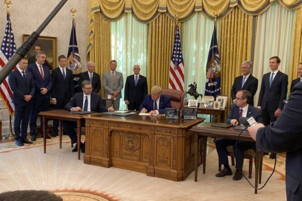 Μια ιστορική συμφωνία υπογράφτηκε την Παρασκευή στο Γραφείο του Λευκού Οίκου ανάμεσα στην ηγεσία της Σερβίας, τον Αλεξάνταρ Βούτσιτς, και της ηγεσίας του Κοσσυφοπεδίου, τον πρωθυπουργό Αμπντουλάχ Χότι, την οποία χαρακτήρισε και ο Πρόεδρος των Ηνωμένων Πολιτειών κ. Ντόναλτ Τραμπ ως “πραγματικά ιστορική δέσμευση”. Η συμφωνία για την οικονομική συνεργασία των δύο χωρών εκτός από τις εμπορικές συναλλαγές αναφέρεται στους λατρευτικούς χώρους της Σερβικής Ορθόδοξης Εκκλησίας.