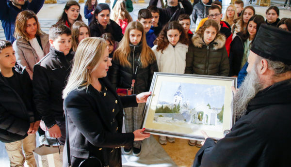 Ξενάγηση σε παιδιά Σέρβων εκτοπισμένων στον Άγιο Σάββα από τον Πατριάρχη Σερβίας