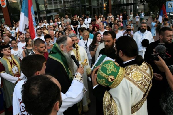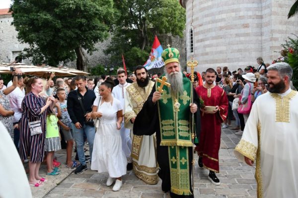 Μεγαλειώδης λιτανεία προεξάρχοντος του Μητροπολίτη Μαυροβουνίου και Παραθαλασσίας κ. Ιωαννίκιου πραγματοποιήθηκε το απόγευμα της Κυριακής στην πόλη Μπούντβα με αφορμή την πανήγυρη της Αγίας Τριάδος, στην οποία είναι αφιερωμένος ιστορικός ναός της πόλης.