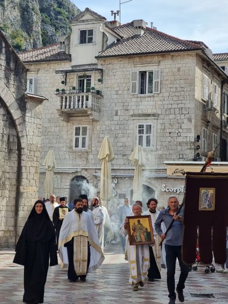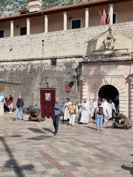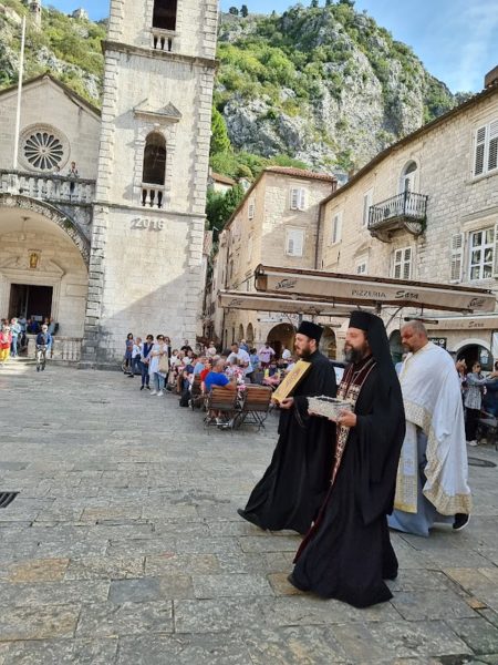 Κλήρος και λαός της παραθαλάσσιας πόλης του Μαυροβουνίου Κότορ υποδέχθηκαν χθες την τιμία χείρα του Αγίου Σπυρίδωνος του Θαυματουργού, την οποία μετέφεραν εκπρόσωποι της Ιεράς Μητρόπολης Κερκύρας, Παξών και Διαποντίων Νήσων.