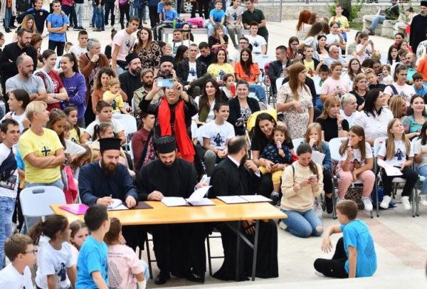 Μετά τη Θεία Λειτουργία, ακολούθησε η τελετουργική έναρξη της Συνέλευσης και το πρόγραμμα της θρησκευτικής αγωγής παιδιών που προέρχονται από το Μπαρ, τα οποία με τη δασκάλα των θρησκευτικών τους κ. Slavica Orlandić, παρουσίασαν το έργο του μακαριστού Μητροπολίτη κυρού Αμφιλόχιου.
