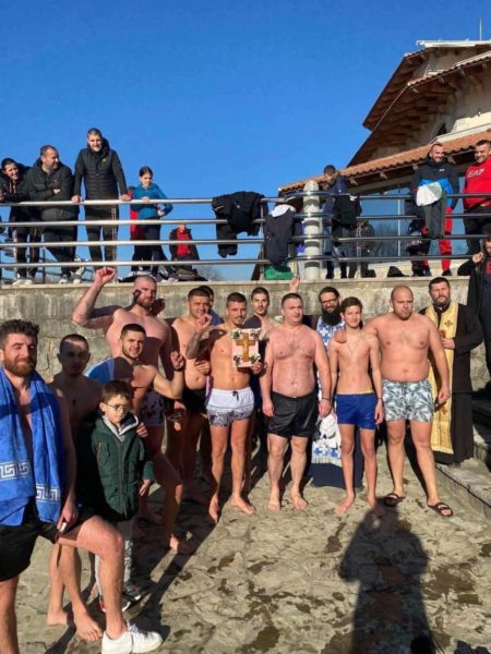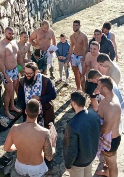 Τον καθαγιασμό των υδάτων τέλεσε ο π. Μπογιάν Ραντούνοβιτς με τον π. Μλάντεν Βαλάτς, ενώ ο Miško Matanović ήταν εκείνος που έπιασε τον Τίμιο Σταυρό.