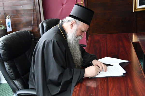 Ο Μητροπολίτης Μαυροβουνίου και Παραθαλασσίας κ. Ιωαννίκιος επισκέφθηκε χθες τον Δήμο Κολάσιν, και με την ευκαιρία αυτή υπέγραψε σύμβαση με τον πρόεδρο του Δήμου Βλαντίμιρ Μαρτίνοβιτς, για την ανέγερση μνημείου προς τιμήν του Μακαριστού Μητροπολίτη Μαυροβουνίου κυρού Αμφιλόχιου.