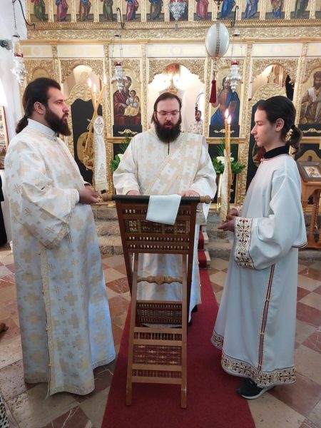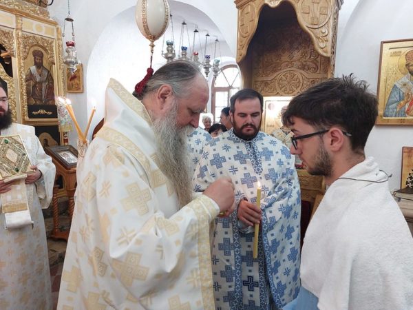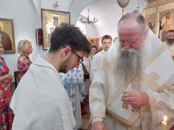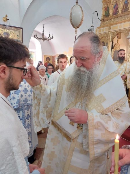 Κατά τη διάρκεια της Θείας Λειτουργίας ο Σεβασμιώτατος βάπτισε και τον δούλο του Θεού Πέτρο.