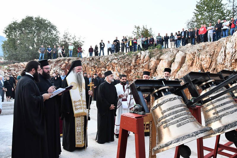«Καθαγιάσαμε αυτές τις τρεις καμπάνες στη δόξα του Θεού, ώστε ο ήχος τους να ξεσηκώνει τις καρδιές όλων των πιστών σε προσευχή. Να τους ενθαρρύνει να προσέλθουν στην Ιερά λειτουργία του Θεού. Να τους αφυπνίσει πνευματικά να αγωνίζονται πάντα για την αρετή”, υπογράμμισε, μεταξύ άλλων, στην ομιλία του ο Μητροπολίτης Μαυροβουνίου.