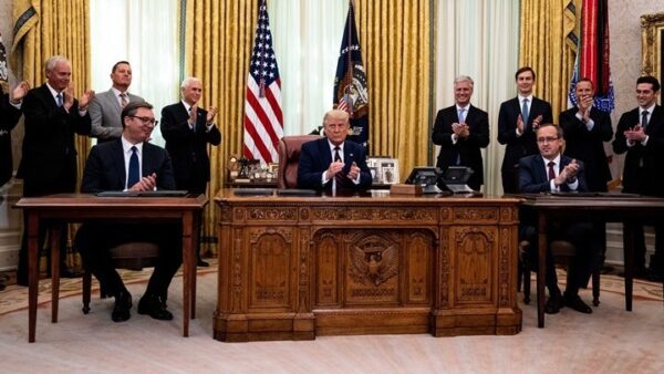 Ιστορική σημασία αποδίδουν το Βελιγράδι και η Πρίστινα στην οικονομική συμφωνία Σερβίας και Κοσόβου που υπεγράφη στον Λευκό Οίκο παρουσία του προέδρου των ΗΠΑ Ντόναλντ Τραμπ. Η συμφωνία προβλέπει την πλήρη εξομάλυνση των οικονομικών σχέσεων Σερβίας και Κοσόβου και επετεύχθη με την διαμεσολάβηση των ΗΠΑ στο πλαίσιο της πρωτοβουλίας της κυβέρνησης Τραμπ για την οριστική επίλυση του ζητήματος του Κοσόβου. Την συμφωνία υπέγραψαν ο πρόεδρος της Σερβίας Αλεξάνταρ Βούτσιτς και ο πρωθυπουργός του Κοσόβου Αβντουλάχ Χότι ενώ επικυρώθηκε και από τον πρόεδρο των ΗΠΑ.