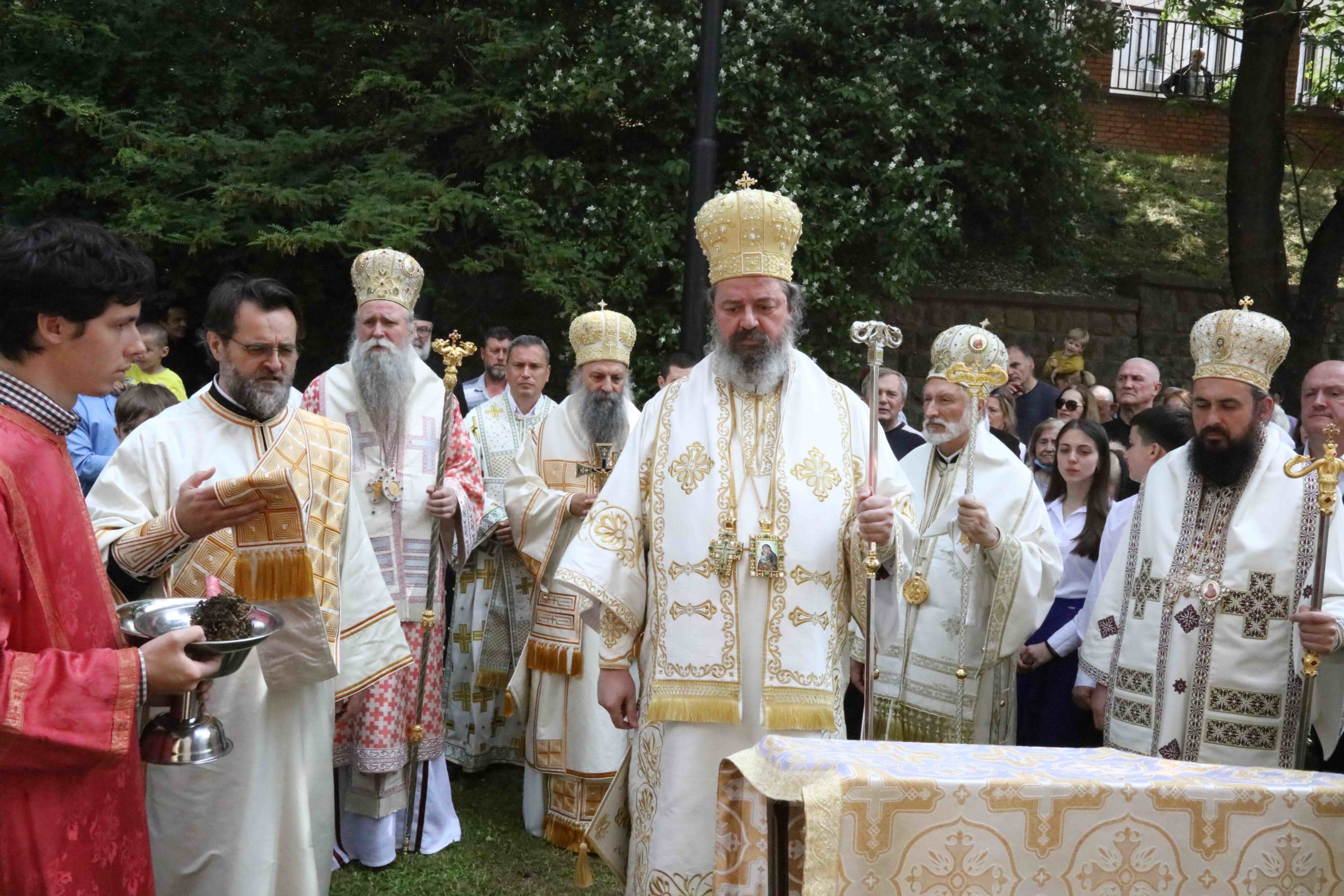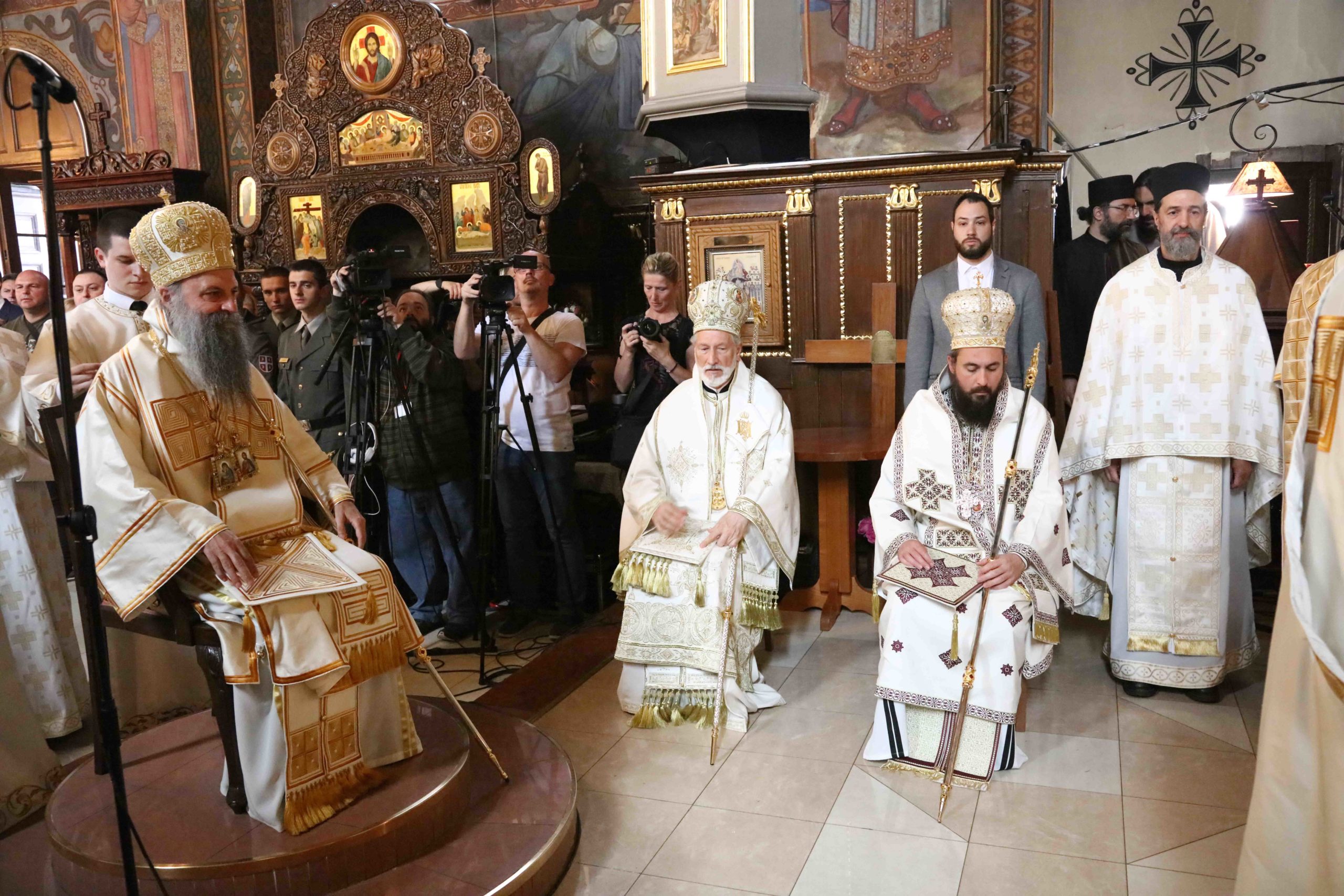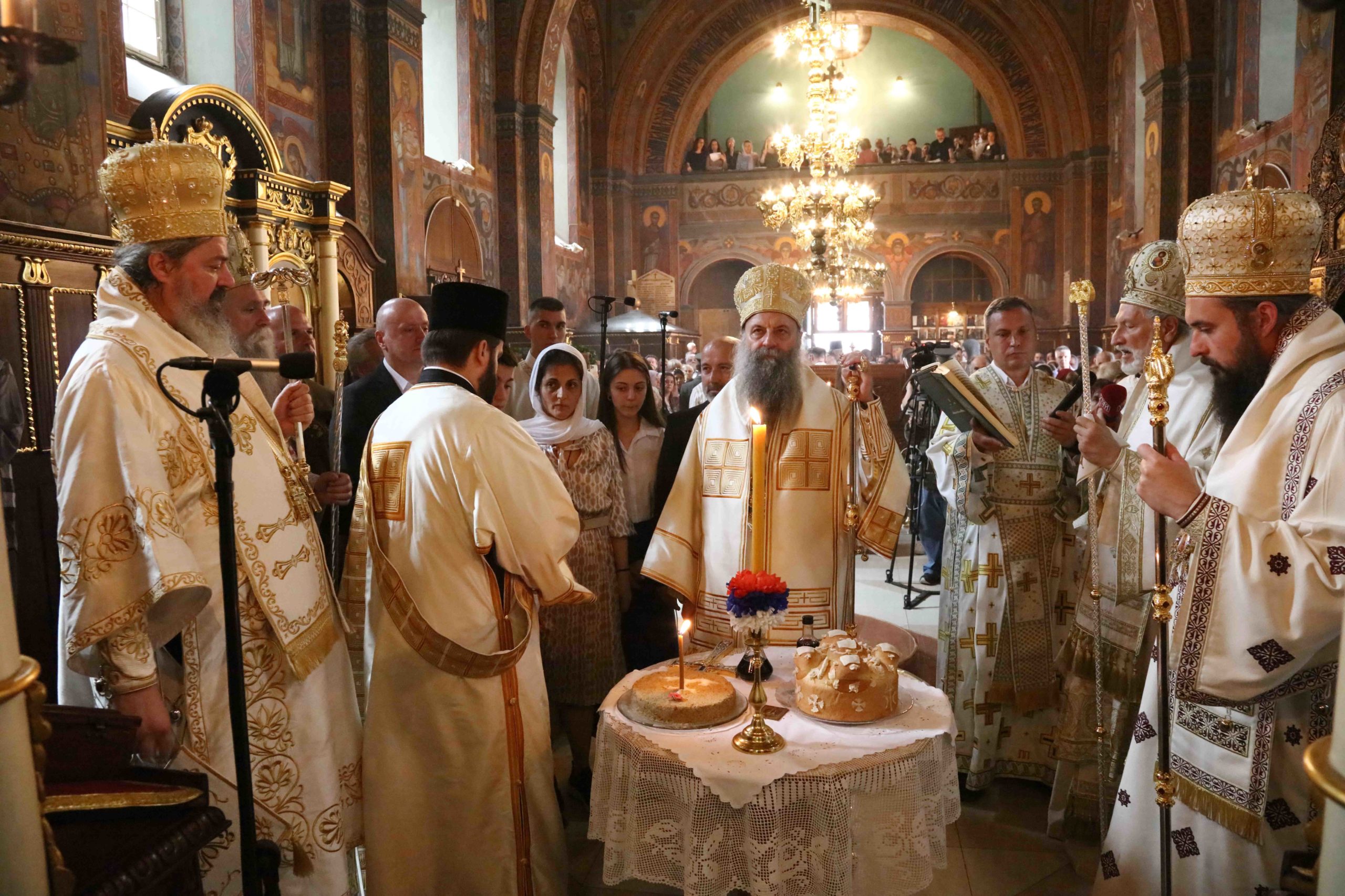 Ο Πατριάρχης Σερβίας κ.κ. Πορφύριος τέλεσε σήμερα της Αναλήψεως του Σωτήρος, τη Θεία Λειτουργία δίπλα στο σκήνωμα του Αγίου Νικολάου της Σερβίας και αμέσως μετά μνημόσυνο για τα θύματα των επιθέσεων σε σχολεία στις 3 και 4 Μαΐου και για αυτά του ναζιστικού βομβαρδισμού της πρωτεύουσας το 1941.