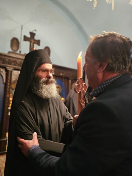 Τόνισε ακόμη ότι ένας μοναχός που βαδίζει το δρόμο του Χριστού, πρέπει να είναι το σαρκωμένο Ευαγγέλιο, για να φανερωθεί μέσα του ο Χριστός, να είναι παρηγοριά σε όλους, να γιατρεύει όλους, να δέχεται κάθε πρόβλημα, κάθε βάσανο, κάθε έγνοια όλων των ανθρώπων που ζουν στον κόσμο και να το κάνει αυτό με την ασκητική του, να το μεταφράζει στην προσευχή του.