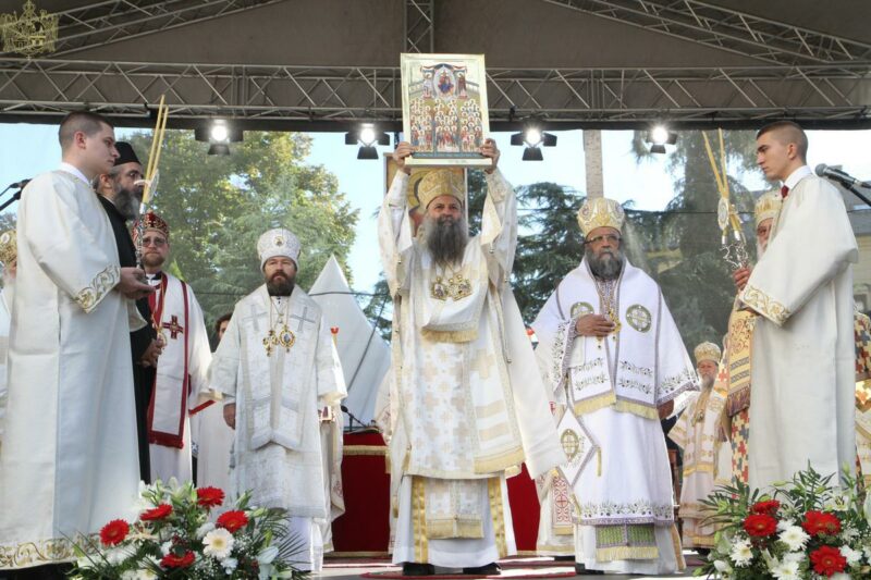 Η Θεία Λειτουργία τελέστηκε σε υπαίθριο χώρο μπροστά από το Επισκοπείο. Συλλειτούργησαν Ιεράρχες της Εκκλησίας της Σερβίας καθώς και οι Μητροπολίτες Αρκαδίας κ. Βασίλειος (Πατριαρχείο Αντιοχείας), Βουδαπέστης και Ουγγαρίας κ. Ιλαρίων (Πατριαρχείο Μόσχας), Κερκύρας, Παξών και Διαποντίων Νήσων κ. Νεκτάριος (Εκκλησία της Ελλάδος), Μιχαλουπόλεως και Κασσοβίας κ. Γεώργιος, καθώς και Επίσκοποι της Αρχιεπισκοπής Αχρίδος.