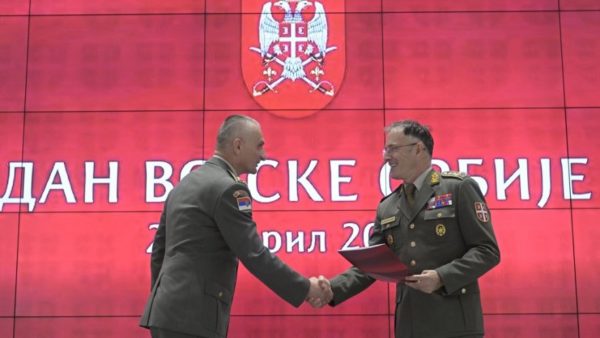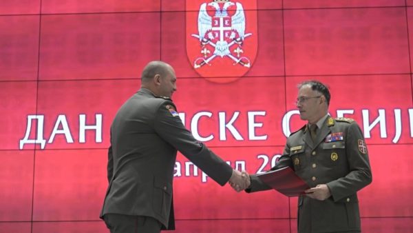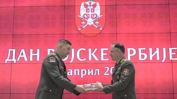 Ο Αρχηγός του Γενικού Επιτελείου των Σερβικών Ενόπλων Δυνάμεων επέδωσε τη Χρυσή Πλακέτα των Σερβικών Ενόπλων Δυνάμεων στον Υπουργό Άμυνας της Σερβίας Μίλος Βούτσεβιτς, ως ένδειξη ευγνωμοσύνης για την εξαιρετική συνεργασία και υποστήριξη που παρείχε στα μέλη των Σερβικών Ενόπλων Δυνάμεων κατά την άσκηση των καθηκόντων του.