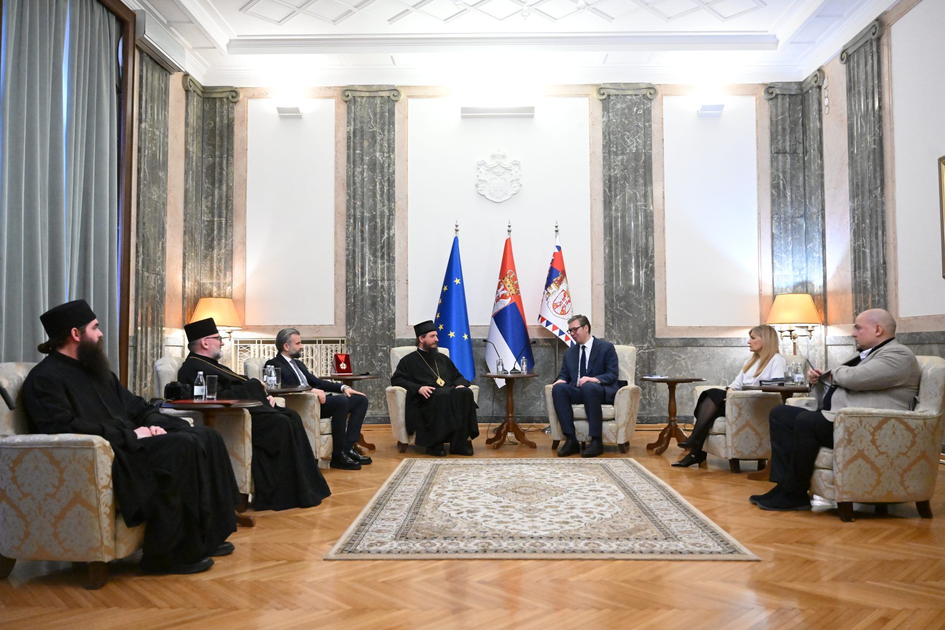 Ο Επίσκοπος Μπίχατς και Πέτροβατς κ. Σέργιος απένειμε, χθες, στον Πρόεδρο της Δημοκρατίας της Σερβίας, κ. Αλεξάνταρ Βούτσιτς, το Παράσημο των Αγίων Νεομαρτύρων Μπίχατς-Πέτροβατς, για την αγάπη και την υλική του βοήθεια στην αποκατάσταση των ιερών της Επισκοπής και ιδιαίτερα για την ιστορική αποκατάσταση της Ιεράς Μονής Αγίου Νικολάου Ρμάνι στο Μάρτιν Μπροντ.