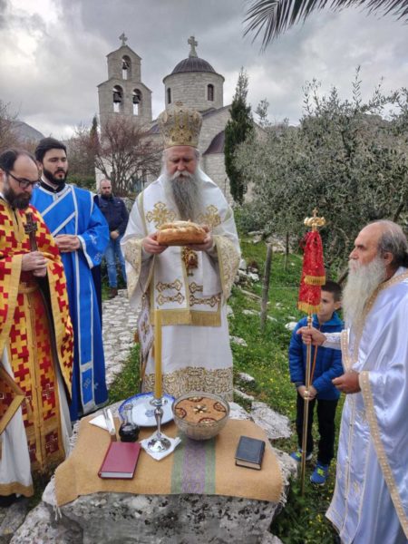Στη συνέχεια ανέφερε ότι η Ιερά Μονή ανακαινίστηκε με τη δράση του μακαριστού Μητροπολίτη Μαυροβουνίου κυρού Αμφιλοχίου ενώ ο Επίσκοπος σημείωσε ότι αγαπάει ιδιαίτερα τη Μονή και γνωρίζει καλά τι σημαίνει για τους ανθρώπους της περιοχής.