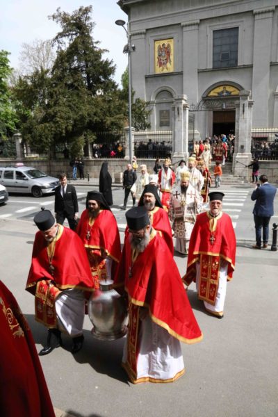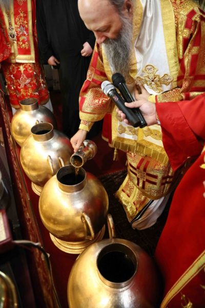 Η διαδικασία παρασκευής και εψήσεως του Μύρου είχε ξεκινήσει στο πατριαρχικό παρεκκλήσιο του Αγίου Συμεών του Μυροβλήτη τη Μεγάλη Δευτέρα και κορυφώθηκε χθες, Μεγάλη Πέμπτη στον Καθεδρικό Ναό του Αρχαγγέλου Μιχαήλ στη σερβική πρωτεύουσα.