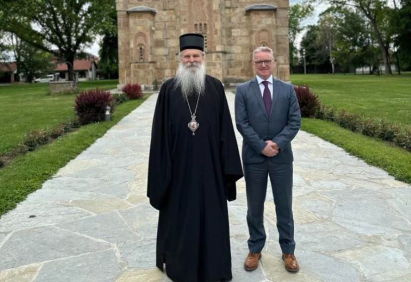 Το νέο επικεφαλής του Οργανισμού για την Ασφάλεια και τη Συνεργασία στην Ευρώπη (ΟΑΣΕ) στο Κοσσυφοπέδιο, Πρέσβη Τζέραρντ ΜακΓκερκ, υποδέχθηκε την Δευτέρα, 19 Μαϊου 2025, στη Μονή Γκρατσάνιτσα, ο Μητροπολίτης Ράσκας και Πριζρένης κ. Θεοδόσιος.