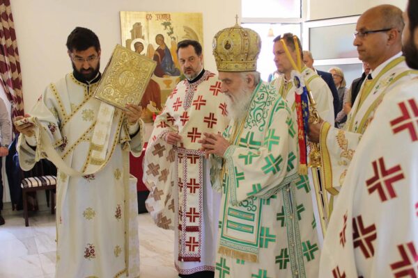Ο Μακαριώτατος, νωρίτερα, προεξήρχε της Θείας Λειτουργίας που τελέστηκε σε παρεκκλήσιο του ναού, ενώ αναφέρθηκε με θερμά λόγια τόσο για τους εφημερίους οι οποίοι με τον καθημερινό τους αγώνα συμβάλουν στην ολοκλήρωση του έργου, όσο και για τους ευεργέτες του ναού ευχαριστώντας τους για τη συμβολή.