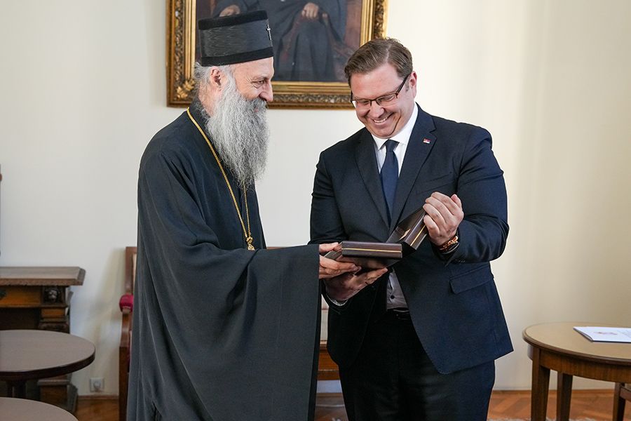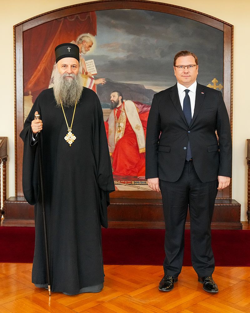 Ο Μακαριώτατος καλωσόρισε τον εκλεκτό προσκεκλημένο και τόνισε ότι εκτιμά ιδιαίτερα τις δραστηριότητες του ιδρύματος που ενδιαφέρεται για τη θέση του σερβικού λαού στην περιοχή και τη διασπορά, τονίζοντας ότι υπό αυτή την έννοια, μαζί με τη Σερβική Ορθόδοξη Εκκλησία, ασχολείται με το σημαντικό αυτό έργο.