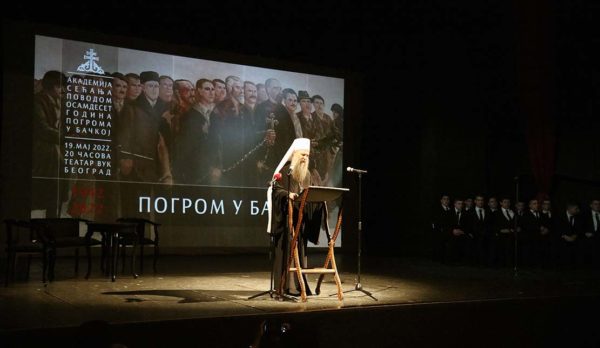 Εκδήλωση Μνήμης παρουσία του Πατριάρχη Σερβίας κ.κ. Πορφυρίου πραγματοποιήθηκε χθες το απόγευμα στο θέατρο Βουκ στο Βελιγράδι με αφορμή τη συμπλήρωση ογδόντα χρόνων από το πογκρόμ των ναζιστικών στρατευμάτων εναντίον των κατοίκων της περιοχής της Νοτίου Μπάτσκας με επίκεντρο τις πόλεις Νόβι Σαντ και Σάικασκα.