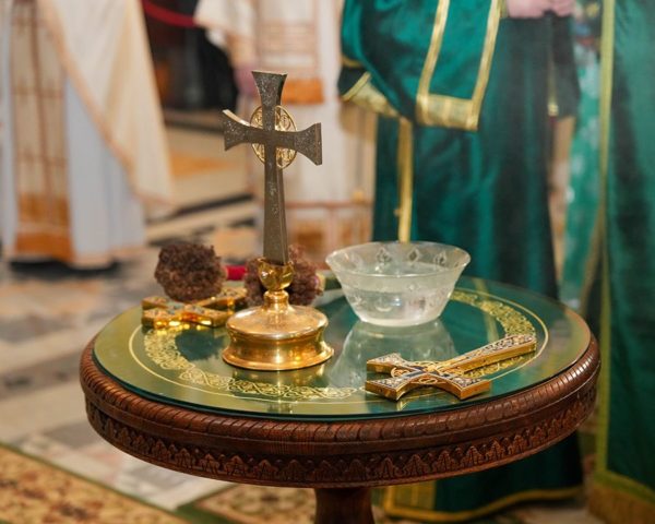 Στο τέλος της Θείας Λειτουργίας, τελέστηκε η ακολουθία του Μεγάλου Αγιασμού.