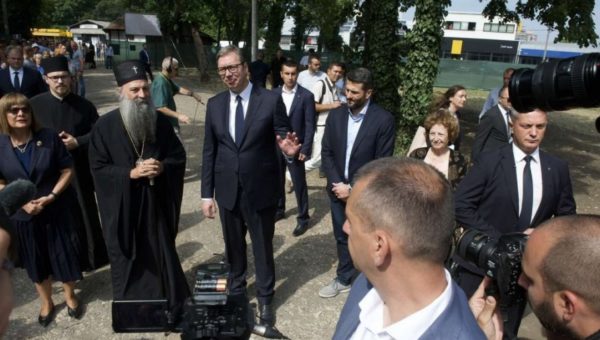Ο Πατριάρχης Σερβίας κ.κ. Πορφύριος και ο Πρόεδρος της Δημοκρατίας της Σερβίας Αλεξάντρ Βούτσιτς παρευρέθηκαν στην έναρξη των εργασιών για την ανοικοδόμηση του Κεντρικού Πύργου στο Κέντρο Μνήμης Ολοκαυτώματος “Staro sajmište” (Παλαίο Σαϊμίστε) στο Βελιγράδι.
