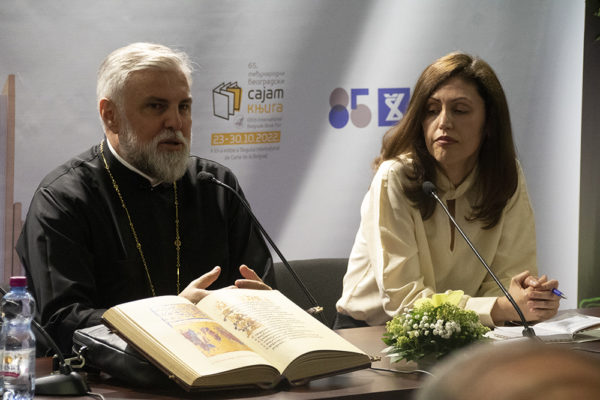 Για τη φωτοτυπική έκδοση που αποτελεί ένα από τα σημαντικότερα σερβικά μεσαιωνικά χειρόγραφα, μίλησε και ο Πανιερώτατος Επίσκοπος Ντίσελντορφ και Γερμανίας κ. Γρηγόριος.