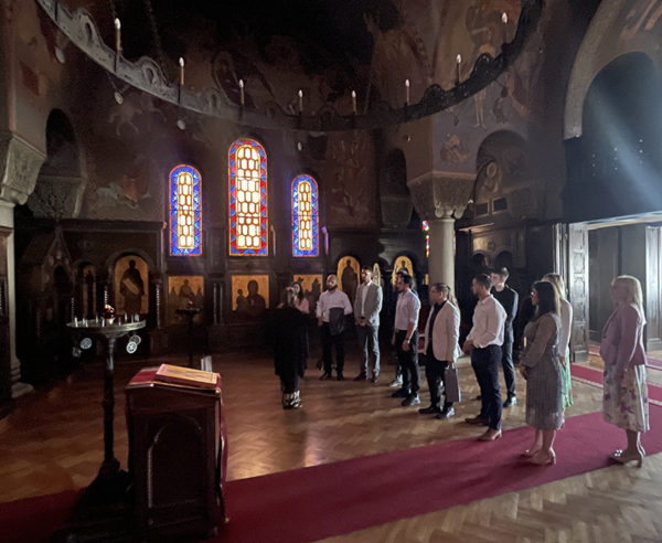 Πριν από τη συνάντηση με τον Πατριάρχη, συνοδευόμενοι από τη Γραμματέα της Επιτροπής Θρησκευτικής Εκπαίδευσης της Αρχιεπισκοπής Βελιγραδίου και Καρλοβικίου, Σάντρα Ντάμπιτς, οι φοιτητές επισκέφθηκαν το Μουσείο της Σερβικής Ορθόδοξης Εκκλησίας, τη Βιβλιοθήκη του Σερβικού Πατριαρχείου, το παρεκκλήσι του Αγίου Συμεών του Μυροβλύτη, την αίθουσα συνεδριάσεων του Καθεδρικού Ναού των Αγίων Επισκόπων και άλλα αξιοθέατα της Πατριαρχικής Αυλής.