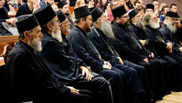 Στο Αμφιθέατρο της Σχολής παρέστησαν επίσης Επίσκοποι της Σερβικής Εκκλησίας, κληρικοί, ακαδημαϊκοί καθηγητές, καθώς και φοιτητές και φοιτήτριες.