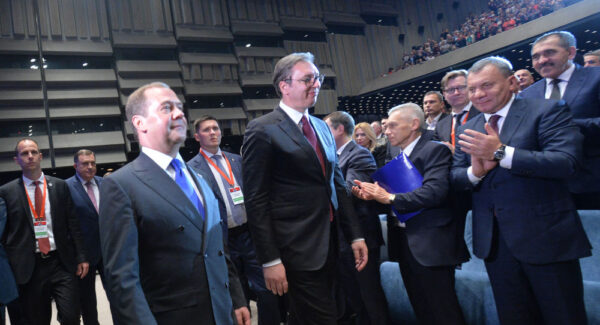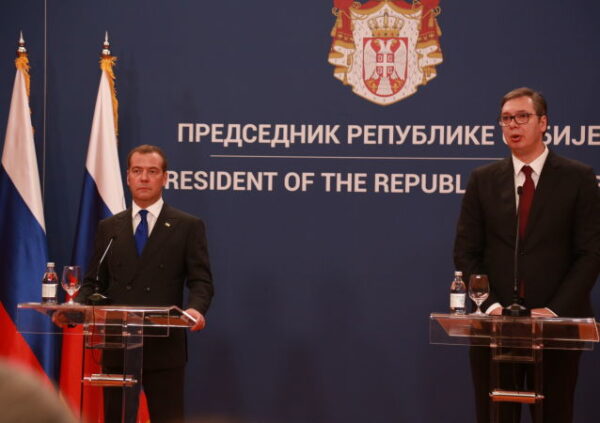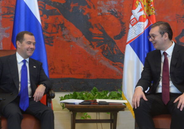 Αξιοσημείωτο είναι επίσης ότι ο κύριος Βούτσιτς έκανε δώρο στον κύριο Μεντβέντεφ μια εικόνα του Αρχαγγέλου Μιχαήλ.