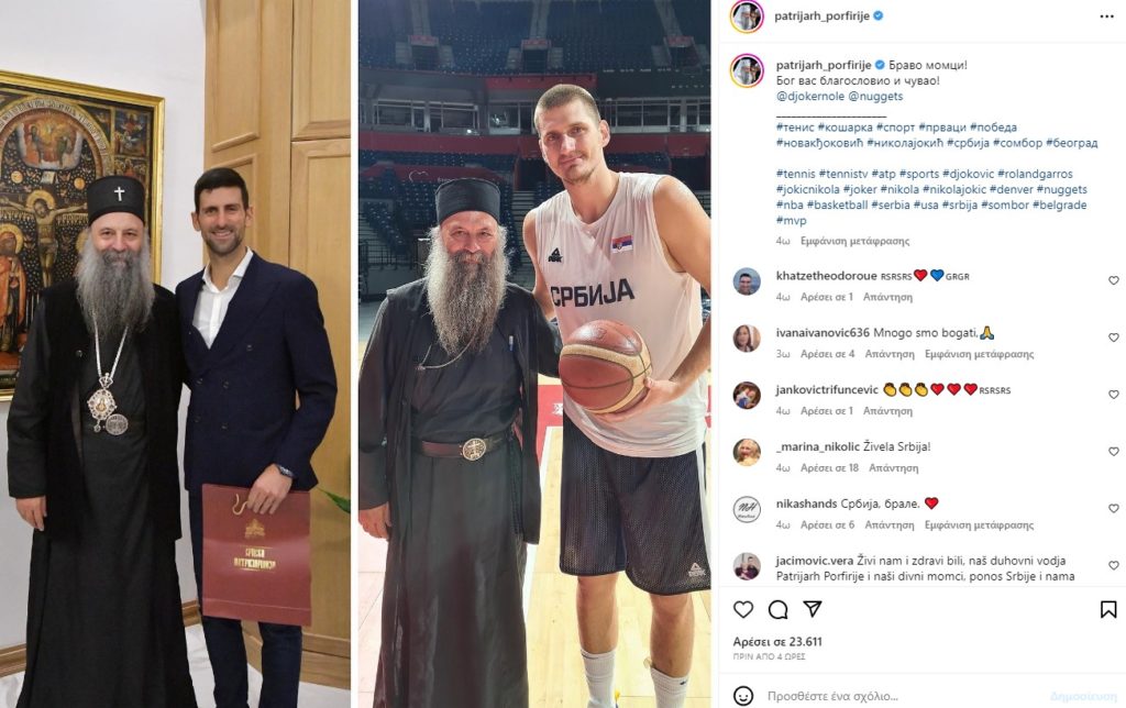 Ο Μακαριώτατος Πατριάρχης Σερβίας κ.κ. Πορφύριος έσπευσε να συγχαρεί τον τενίστα Νόβακ Τζόκοβιτς και τον αστέρα του ΝΒΑ Νίκολα Γιόκιτς, δύο από τα μεγαλύτερα ονόματα όχι μόνο του Σερβικού αλλά του παγκοσμίου αθλητισμού, για τις σημαντικές διακρίσεις τους.
