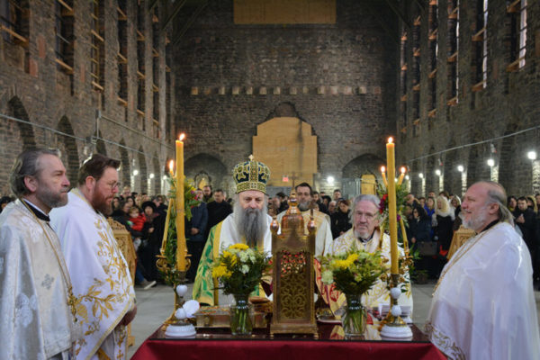 Με τον Προκαθήμενο της εν Σερβία Ορθοδόξου Εκκλησίας συλλειτούργησε ο Επίσκοπος Καναδά κ. Μητροφάνης οι κληρικοί του ναού. Στην ομιλία του ο Μακαριώτατος κ.κ. Πορφύριος ευχαρίστησε τις αρχές της Νέας Υόρκης που έδωσαν την άδεια για να τελεστεί το Μυστήριο της Θείας Ευχαριστίας στο ναό που ακόμα βρίσκεται υπό ανακαίνιση μετά τις ζημιές που είχε υποστεί από την καταστροφική πυρκαγιά.