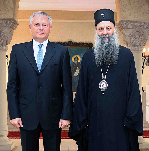 Σε μια εγκάρδια συνομιλία, ο Πρέσβης και ο Πατριάρχης Σερβίας συμφώνησαν ότι είναι υψίστης σημασίας να συνεχίσουν να καλλιεργούνται και να αναπτύσσονται ειλικρινείς φιλικές σχέσεις μεταξύ των δύο λαών. Παρέστησαν, επίσης, ο Θεοφιλέστατος Επίσκοπος Μάρτσας κ. Σάββας, Προϊστάμενος του Πατριαρχικού Γραφείου.